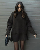 Meet Coralie™, the knit set that brings comfort and confidence together in one timeless silhouette. Crafted for the modern woman who loves to stay cozy without sacrificing style, this two-piece features a relaxed-fit sweater paired with a matching mini skirt — perfect for crisp mornings, chic afternoons, and cozy autumn nights.