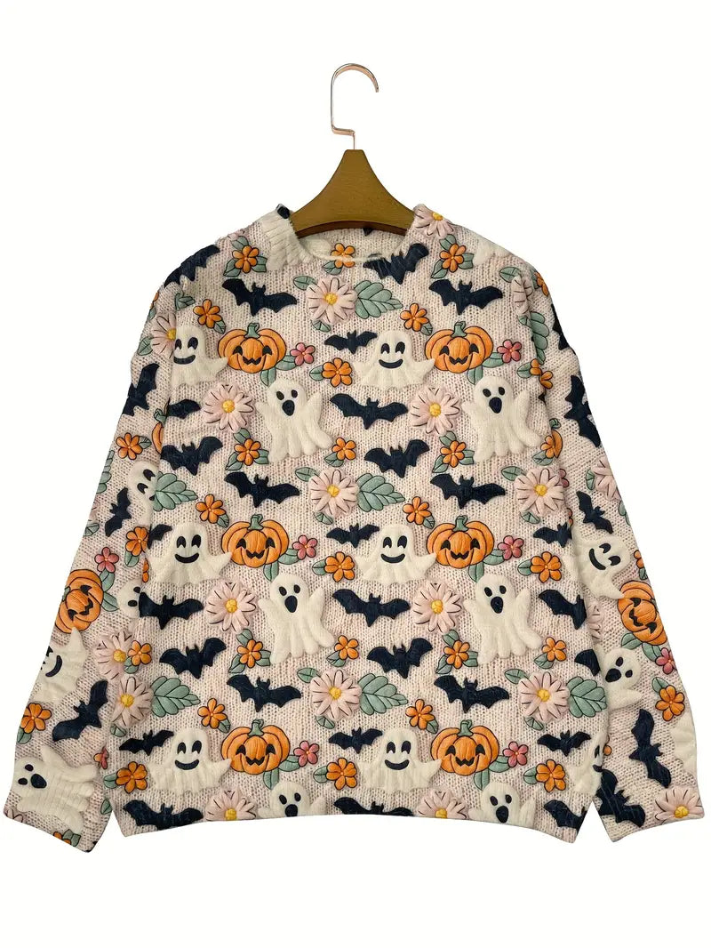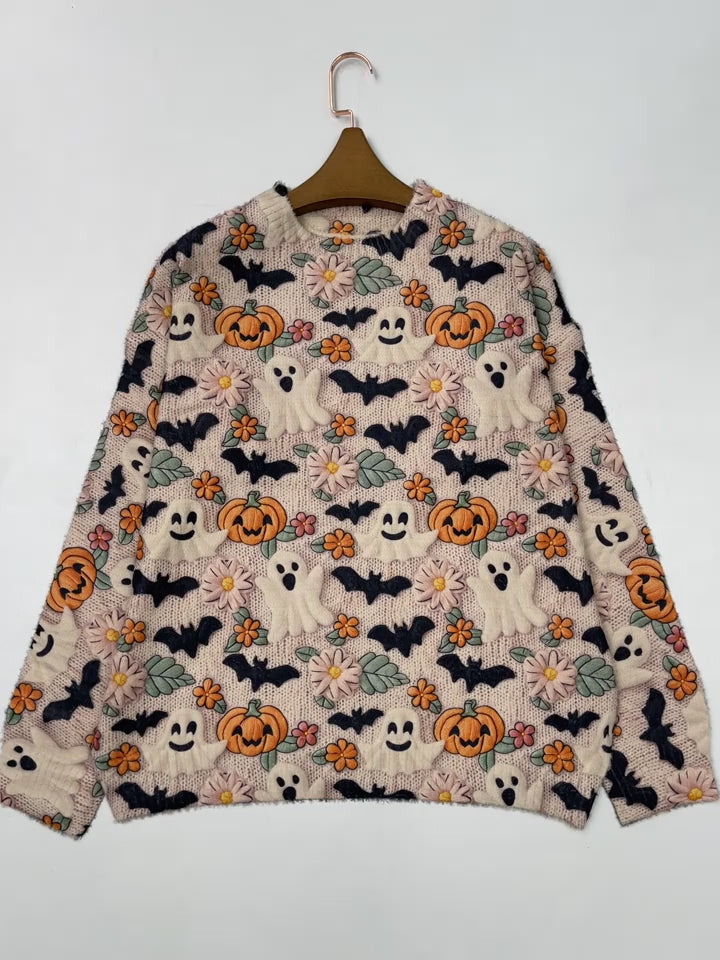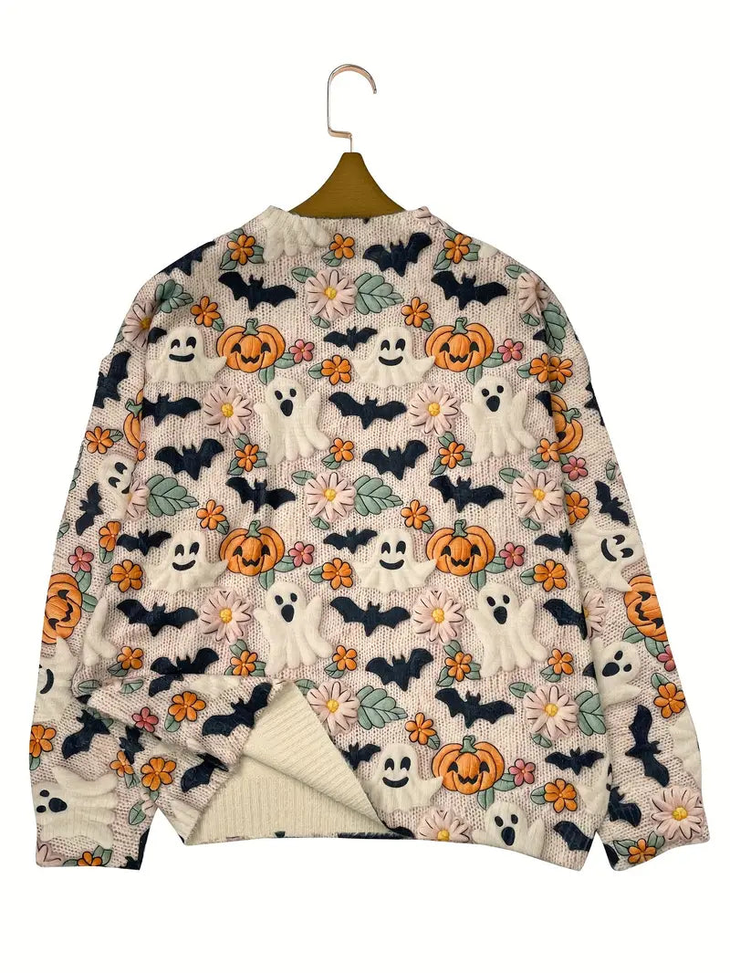 Celebrate spooky season in style with the Hailey™ Halloween Knit Sweater — a soft, thick-knit favorite designed for comfort, warmth, and a touch of festive fun. Featuring a whimsical all-over print of ghosts, pumpkins, and bats, it’s the perfect blend of cozy and cute for autumn and winter days.