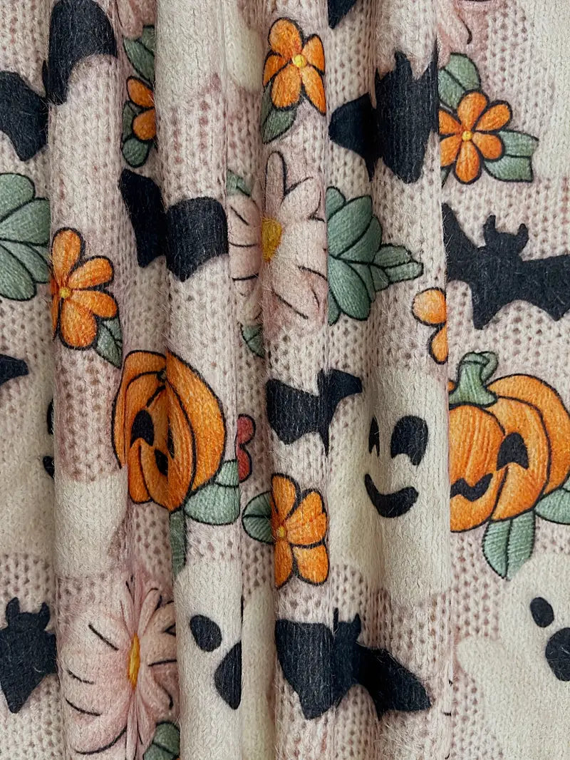 Playful All-Over Print – Adorable ghosts, pumpkins, and bats bring the Halloween spirit to life.