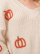 Embrace the cozy spirit of fall with the Morgan Pumpkin Patch Sweater — where comfort meets seasonal charm. Crafted in a soft, chunky knit with delicately embroidered pumpkins, it captures the essence of crisp autumn days and fireside evenings. The subtly distressed hem and neckline give it a relaxed, lived-in feel, perfect for everything from pumpkin patch strolls to cozy nights at home.