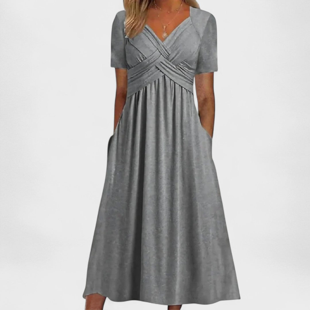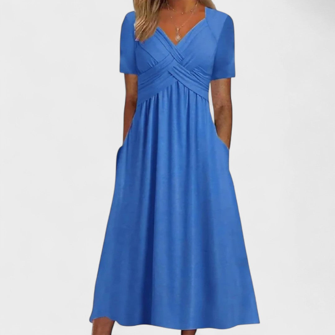 The Lily A-Line V-neck dress brings timeless elegance with a touch of ease. Designed to flatter your figure while keeping you comfortable, it’s the versatile piece you’ll reach for on both relaxed afternoons and elegant evenings.