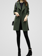 Crafted from a soft yet structured wool-blend fabric, this coat drapes beautifully while keeping its refined shape. Whether layered over denim for daytime ease or over a dress for evening polish, Aurora ensures you look effortlessly put-together from morning to night.