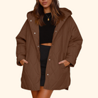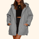 Its relaxed silhouette and soft quilted texture flatter your figure, while the protective hood and practical pockets make it as useful as it is beautiful. From brisk morning walks to candlelit evenings, Elowen™ is the coat that carries you through it all — with elegance that never fades.