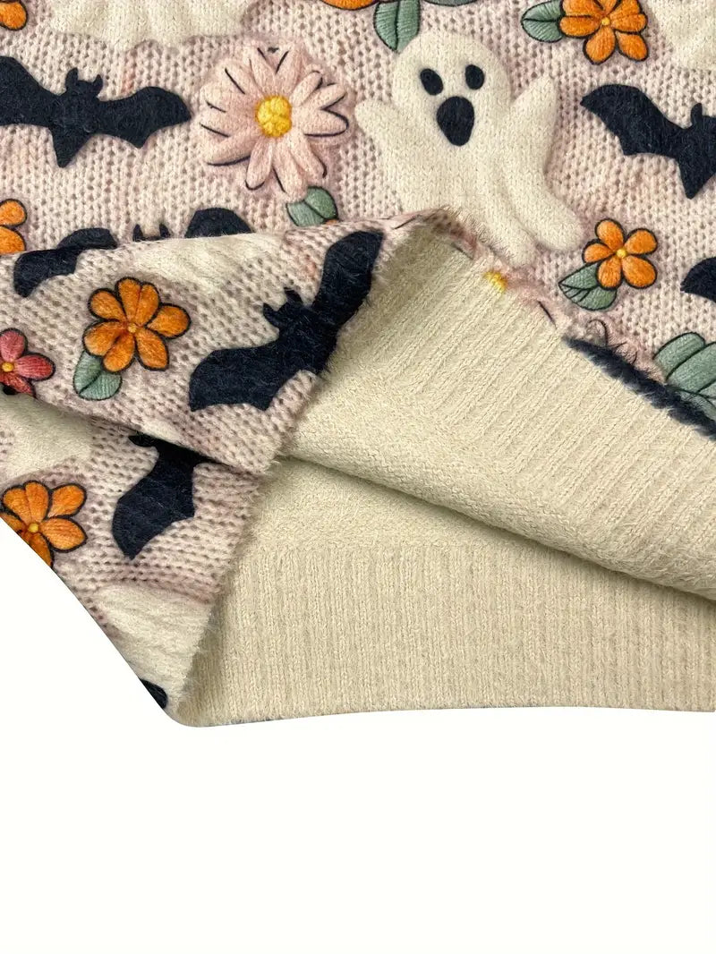 Celebrate spooky season in style with the Hailey™ Halloween Knit Sweater — a soft, thick-knit favorite designed for comfort, warmth, and a touch of festive fun. Featuring a whimsical all-over print of ghosts, pumpkins, and bats, it’s the perfect blend of cozy and cute for autumn and winter days.